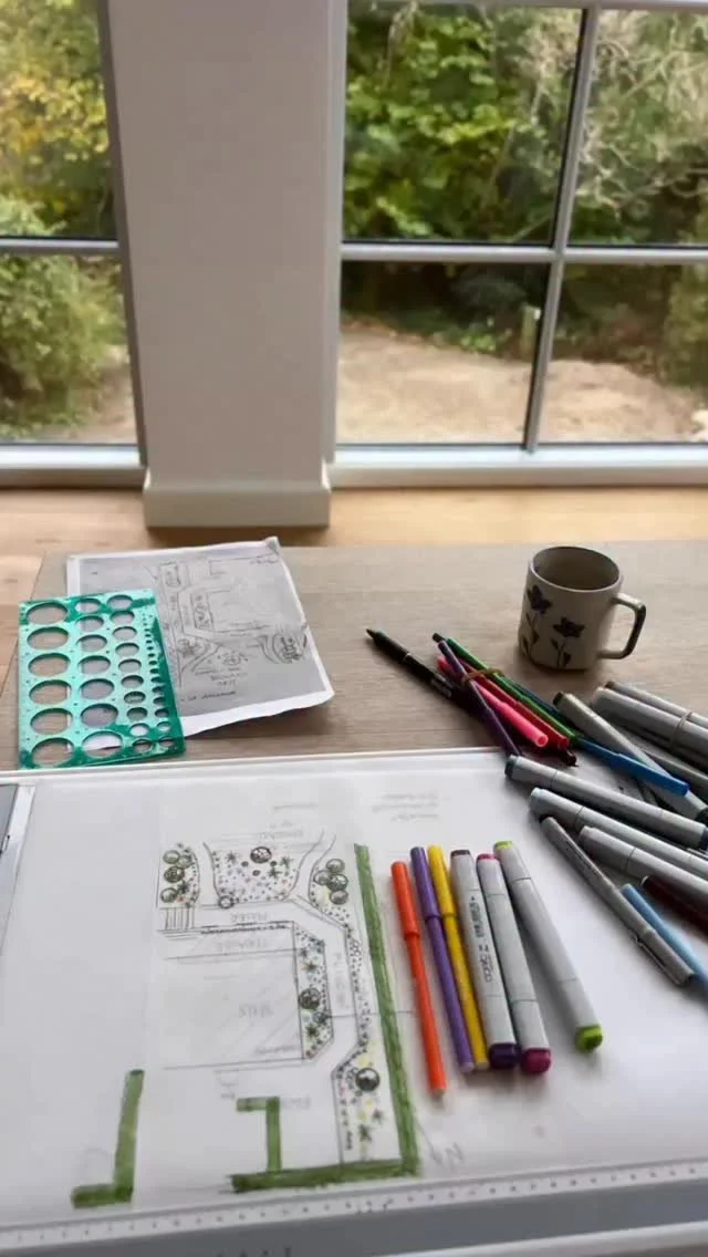 - En gennemarbejdet håndtegnet haveplan i typisk i A3 og 1:100 eller 1:200, der giver dig forslag til, hvor du indretter haven og placerer fremtidige funktioner og anlæg som terrasser, stier og staudebede med udgangspunkt i dine drømme, smag og ønsker